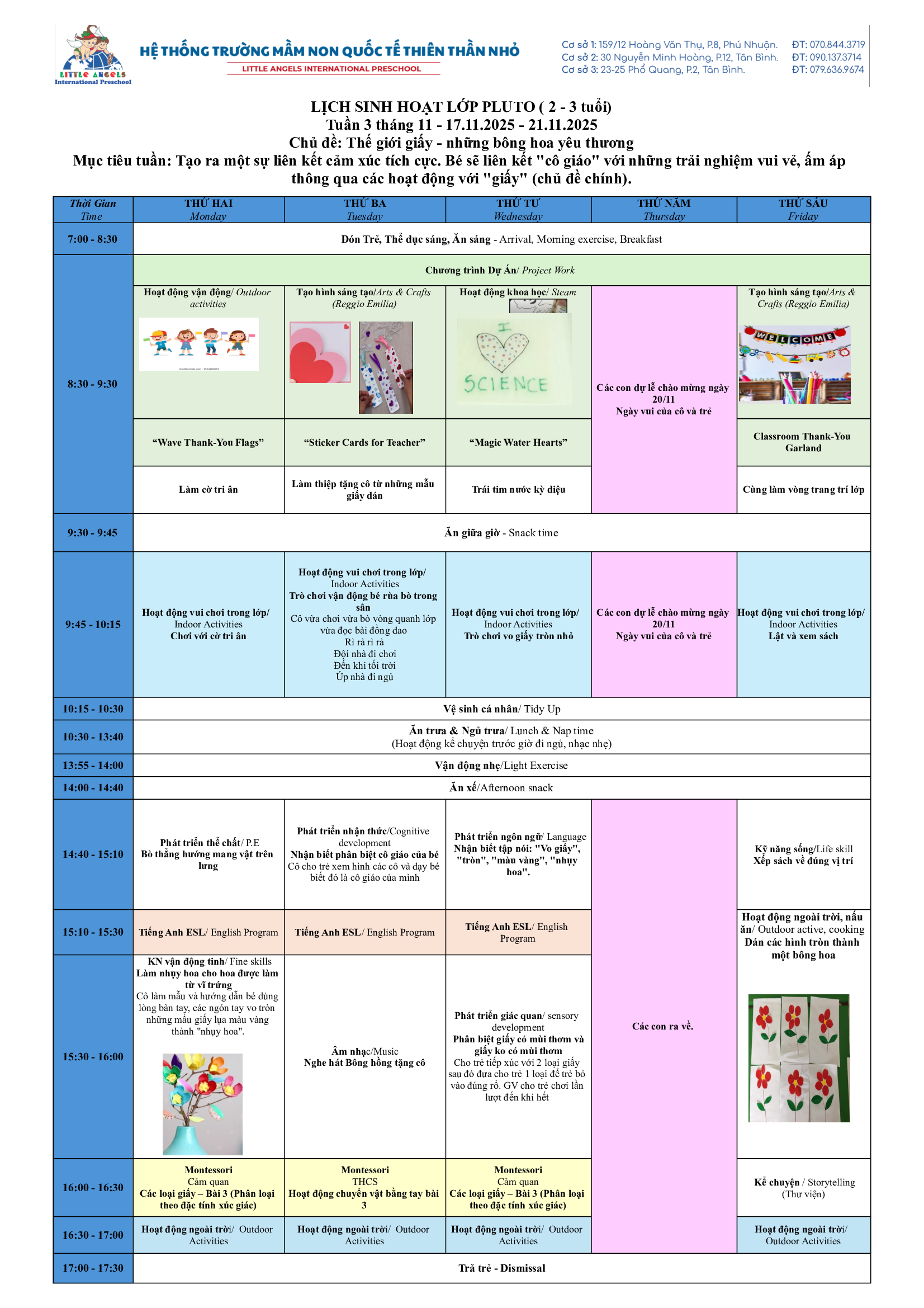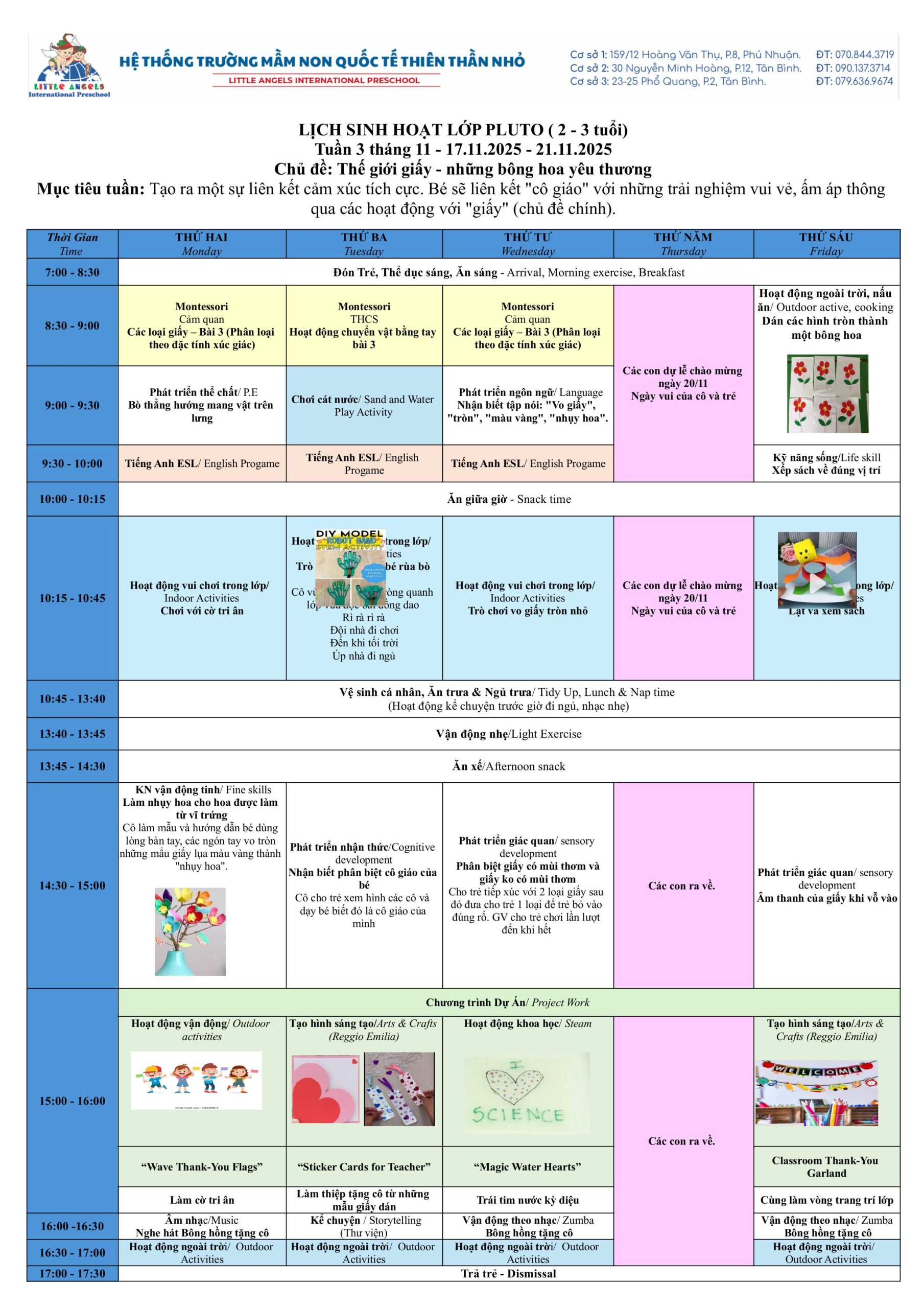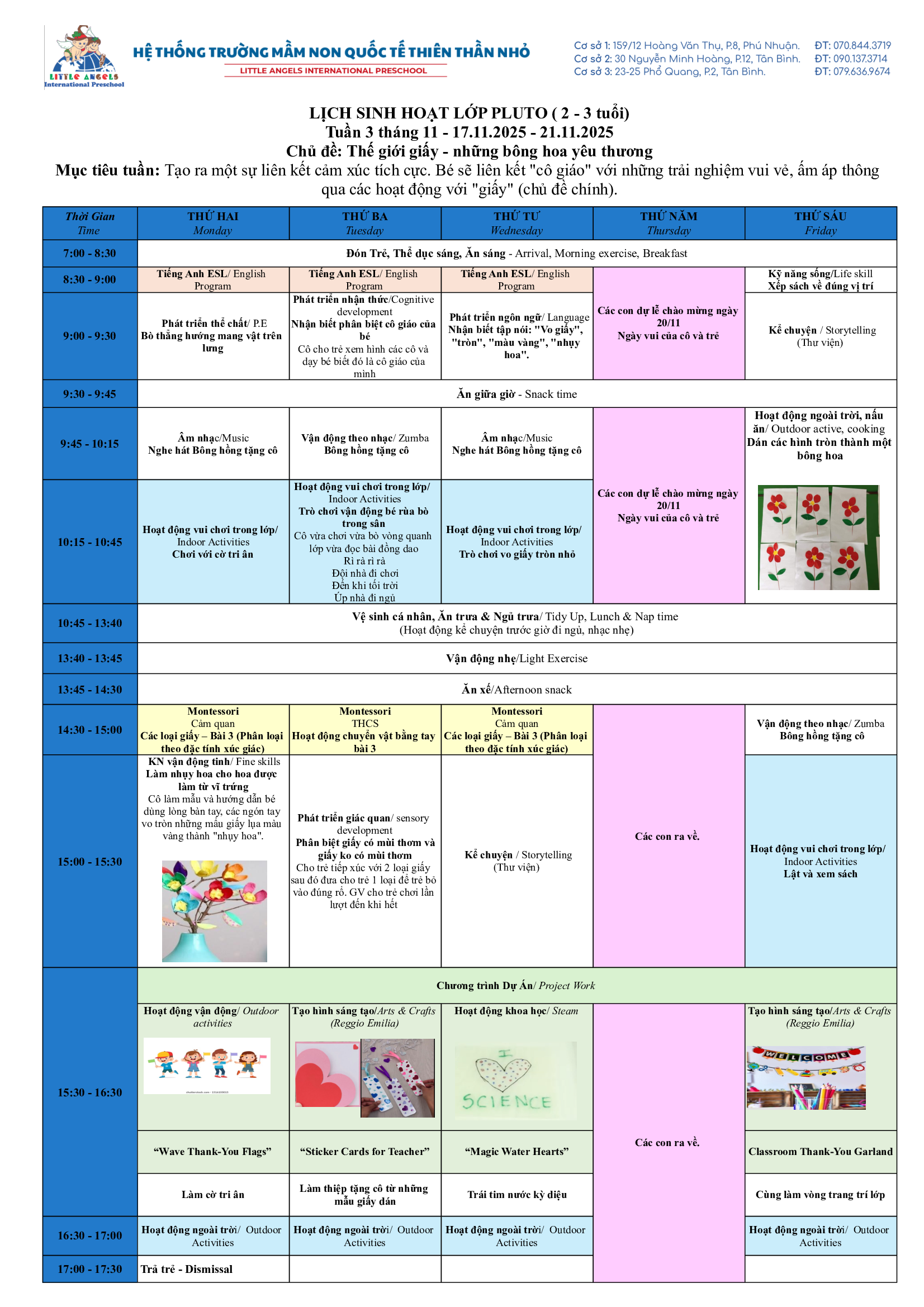 Trường Mầm Non Quốc Tế Thiên Thần Nhỏ xin trân trọng gửi đến ba mẹ kế hoạch hoạt động tuần [17-21/11/2025] của các bé.