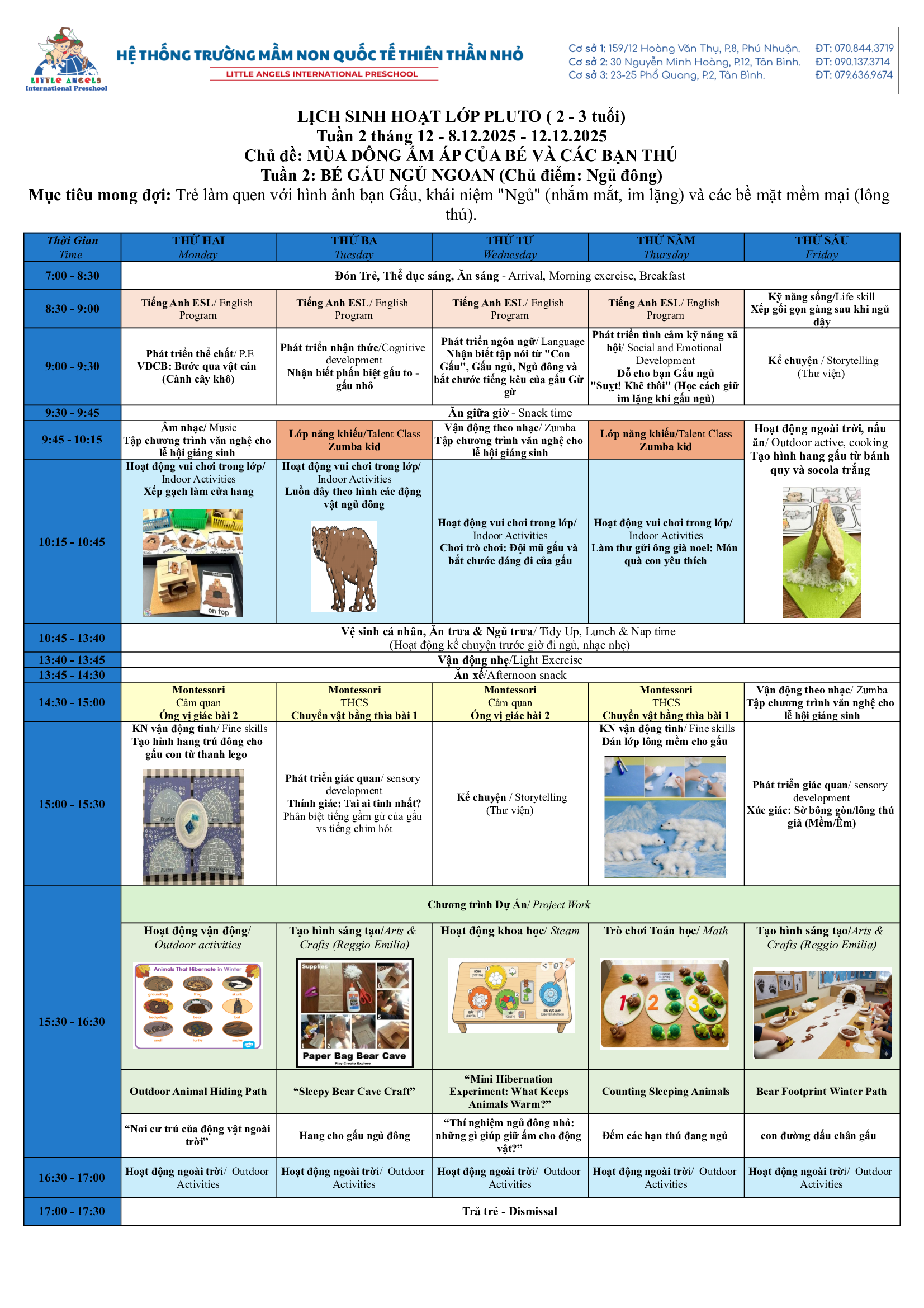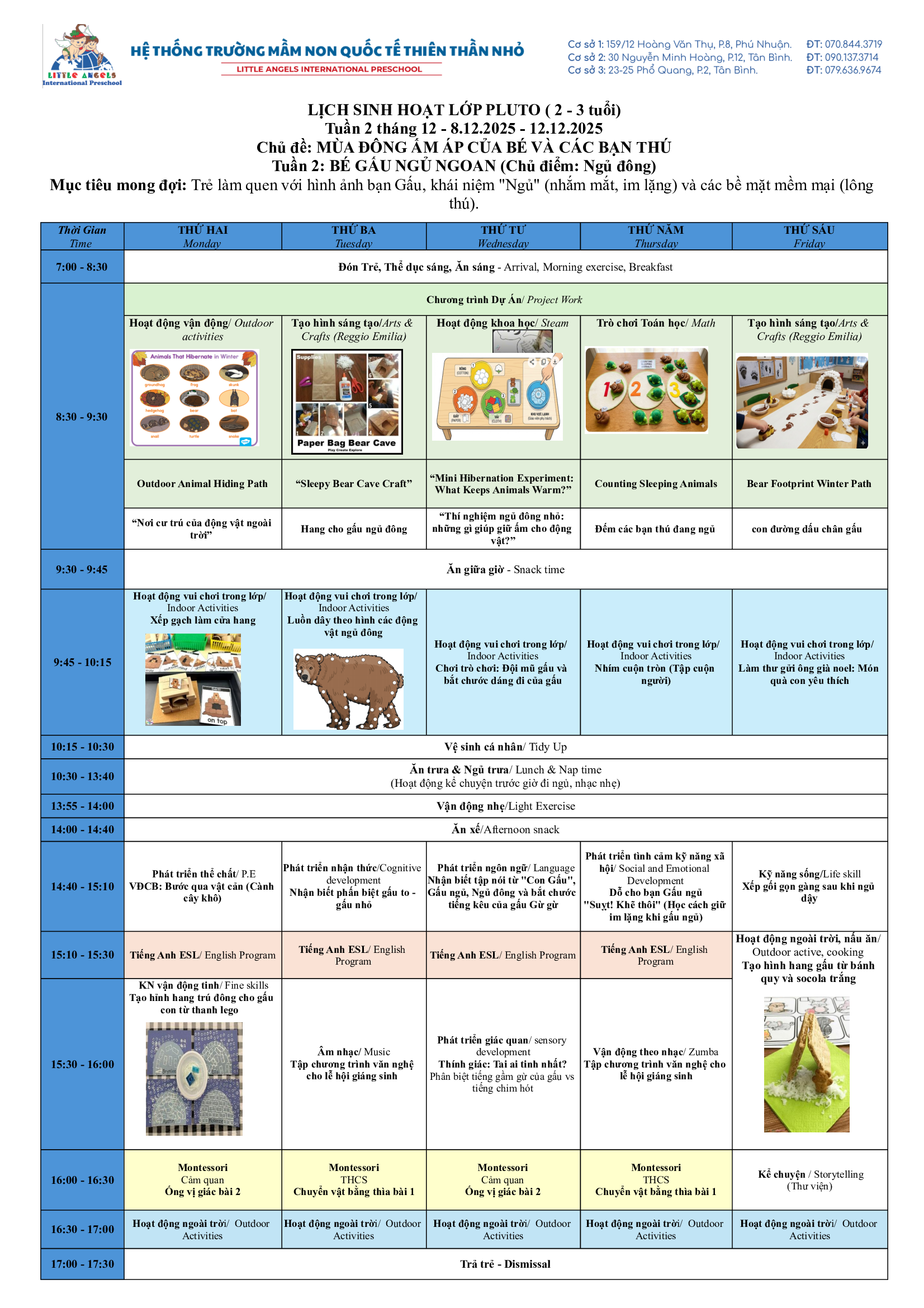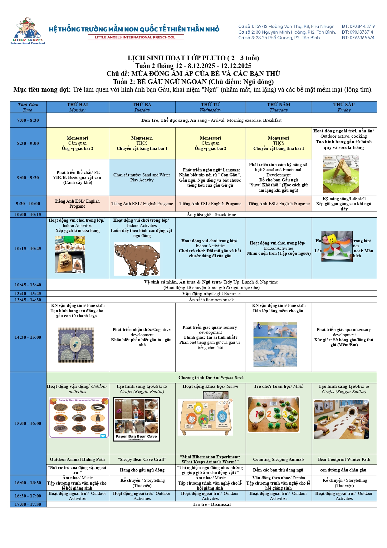 Trường Mầm Non Quốc Tế Thiên Thần Nhỏ xin trân trọng gửi đến ba mẹ kế hoạch hoạt động tuần [08-12/12/2025] của các bé.